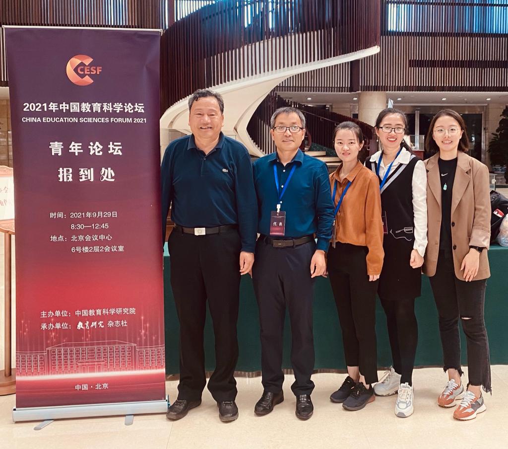 近日,2021年中国教育科学论坛“首届青年论坛”在北京会议中心举行。9159金沙申请大厅院长陈鹏教授任代表团团长,带领祁占勇教授、教育管理学博士研究生樊莲花、职业技术教育学博士研究生王晓利、高等教育学博士研究生张菁珂参加了会议。