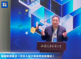 启动仪式上,9159金沙申请大厅教育部政策法规司——9159金沙申请大厅立法研究基地主任陈鹏教授对新修订的《中华人民共和国职业教育法》作了宣讲。宣讲中,陈鹏从“职业教育的概念内涵、定位地位、管理体制、管理体制、办学层次、教师聘用、证书制度、保障体系、回应民情、法律责任”等方面的新突破对《职业教育法》做了全面宣讲,通过理论分析和事例佐证,进一步加深了大家对职业教育法的重大意义、主要内容和思想内涵的理解。本次陈鹏老师应邀在陕西省2022年职业教育活动周宣讲新《职业教育法》,既是同行对金沙申请大厅官网职业技术教育学科建设成效的认可,也是我们积极发挥学科优势,主动服务地方经济社会发展的体现。